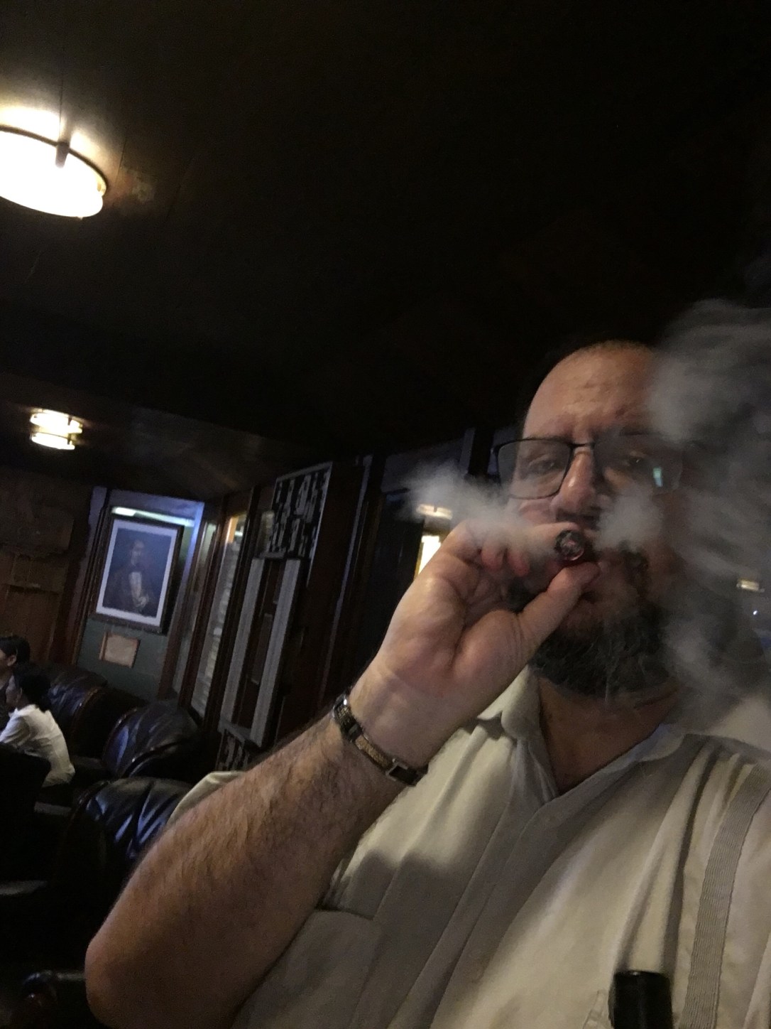 We were there amongst a group of stereotypically loud tourists from 90 miles away, so the manager invited us to sit and relax in their VIP lounge. It was like going behind the curtain at a quiet restaurant to find the sanctum sanctorum. Beautiful leather chairs, gorgeous decor; it felt like the smoking room of a men’s club from another century. Despite it being fourteen months ago, I remember the following things: we smoked Cohiba Pyramides Extras, we drank spectacular cappuccino, and we had a wonderful and relaxing time.