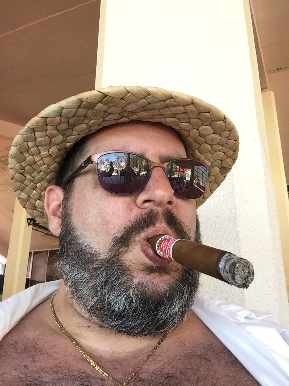 The evening entertainment changes nightly, and I hope we will have a good show this evening. For now, beneath the stage there is a couple playing ping pong. A lot of people are smoking cigarettes, and only a few are smoking cigars (as I am). I am excited that this evening I will be lighting a very special cigar, a foot-long custom roll gifted to me by the Grand Dame herself. It is big enough that I had to be careful transporting it from Havana, but it got here unscathed. I was tempted to take it home and let it age, but I cannot imagine how it would make it home undamaged. Besides, imagine the conversations I will attract with that beast that is a 56 ring gauge and is nearly as long as my size 12.5 shoes!