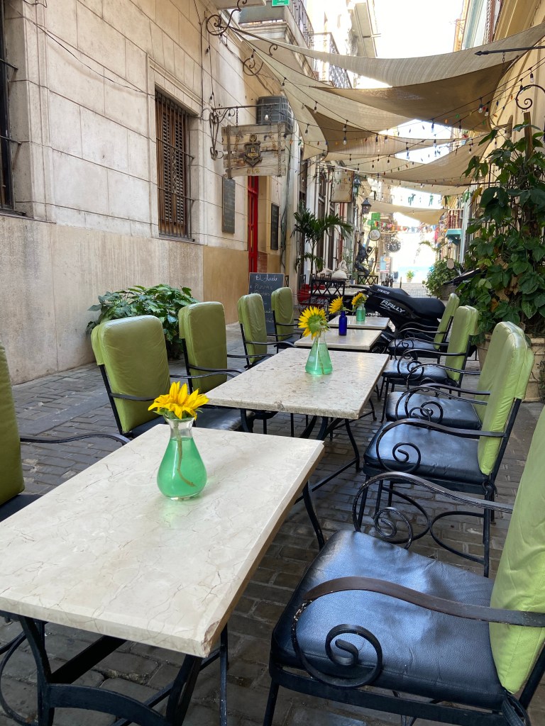 Walking through streets where I am usually accosted by people trying to bring me in to their restaurants is eerie when the voices are silent, the tables empty, the restaurants closed. Of the five such establishments on La Espada, only one is open today. Here on Callejon de Peluqueros is is two out of four. Slowly but surely, this vibrant and amazing city, one of the great tourist destinations and seven wonders of the world, is shutting down.